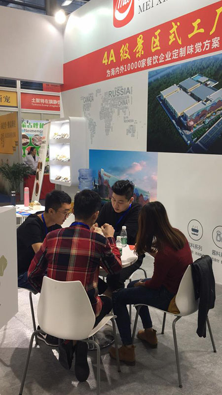 美鑫食品經過精心準備,憑借專業的研發團隊,高品質的火鍋底料、蘸料再次成為同行業中的一大亮點。色味俱佳、其味無窮,吸引了眾多專業客戶的駐足觀看和咨詢洽談。